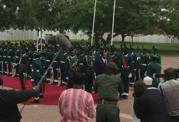 meeting President Paul Biya of Cameroon behind closed doors inside the